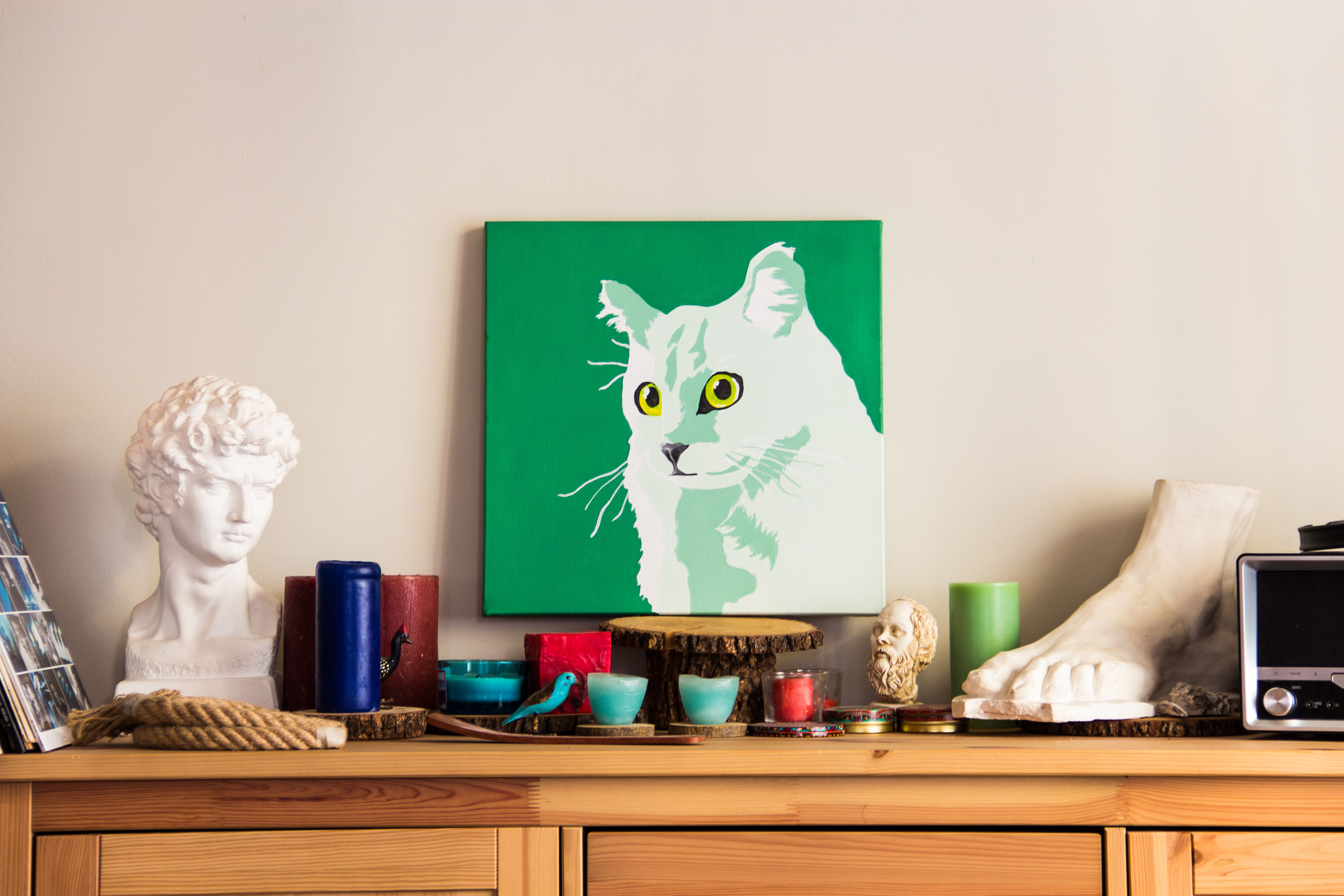 Pop art stilinde, referans görsellerden yola çıkılarak akrilik boya ile tuval üzerine hazırlanmış el yapımı bir çalışmadır.