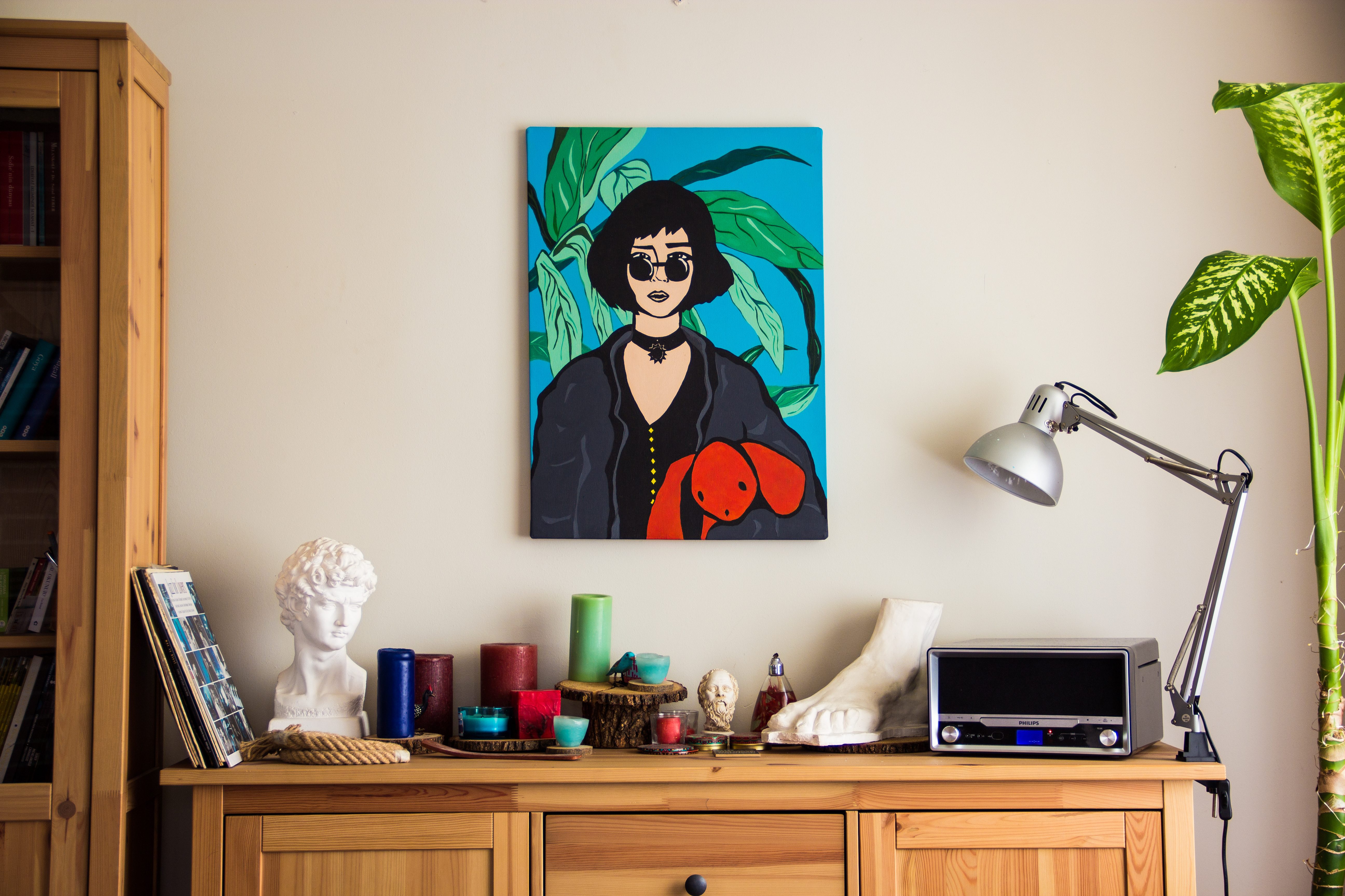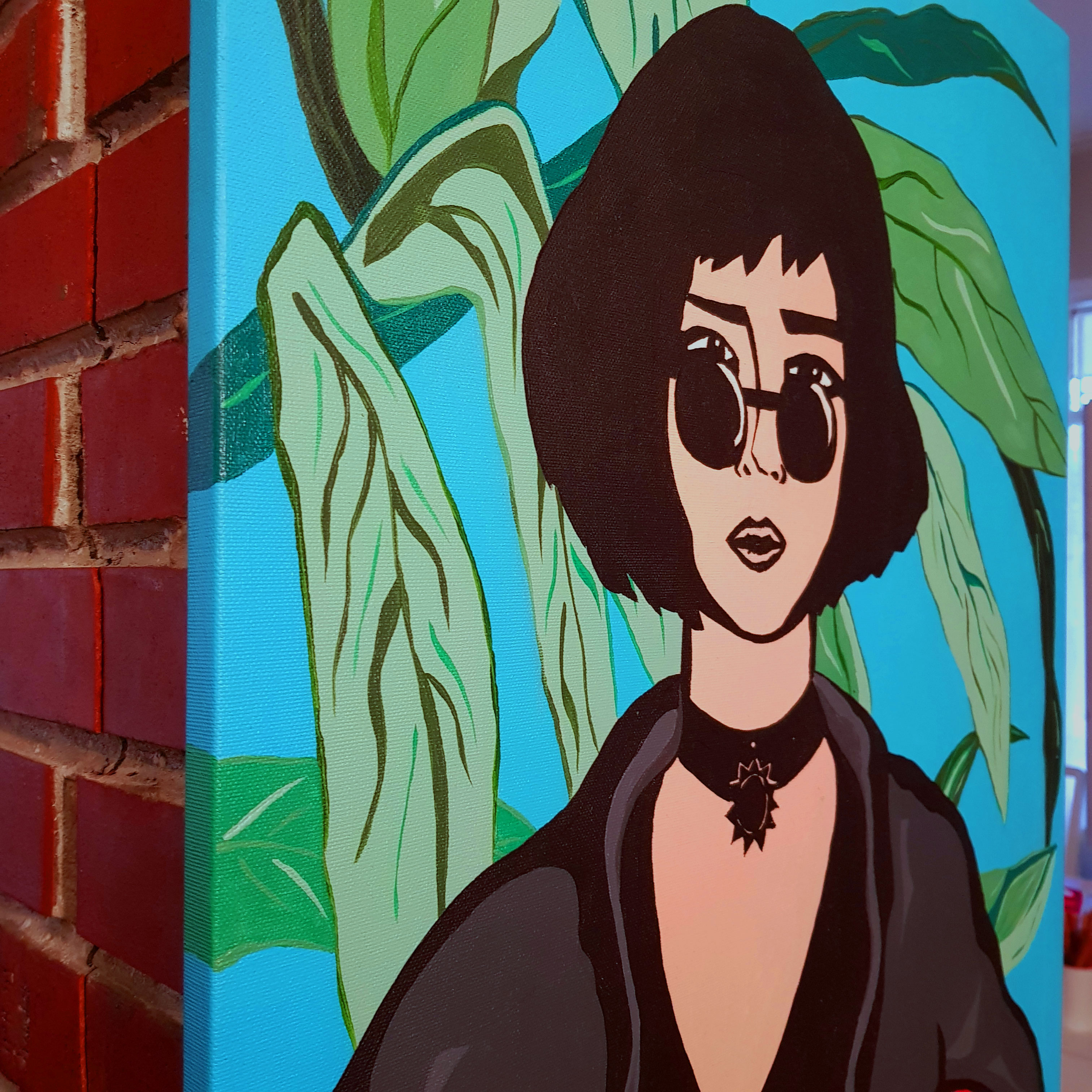 Pop art stilinde, referans görsellerden yola çıkılarak akrilik boya ile tuval üzerine hazırlanmış el yapımı bir çalışmadır.