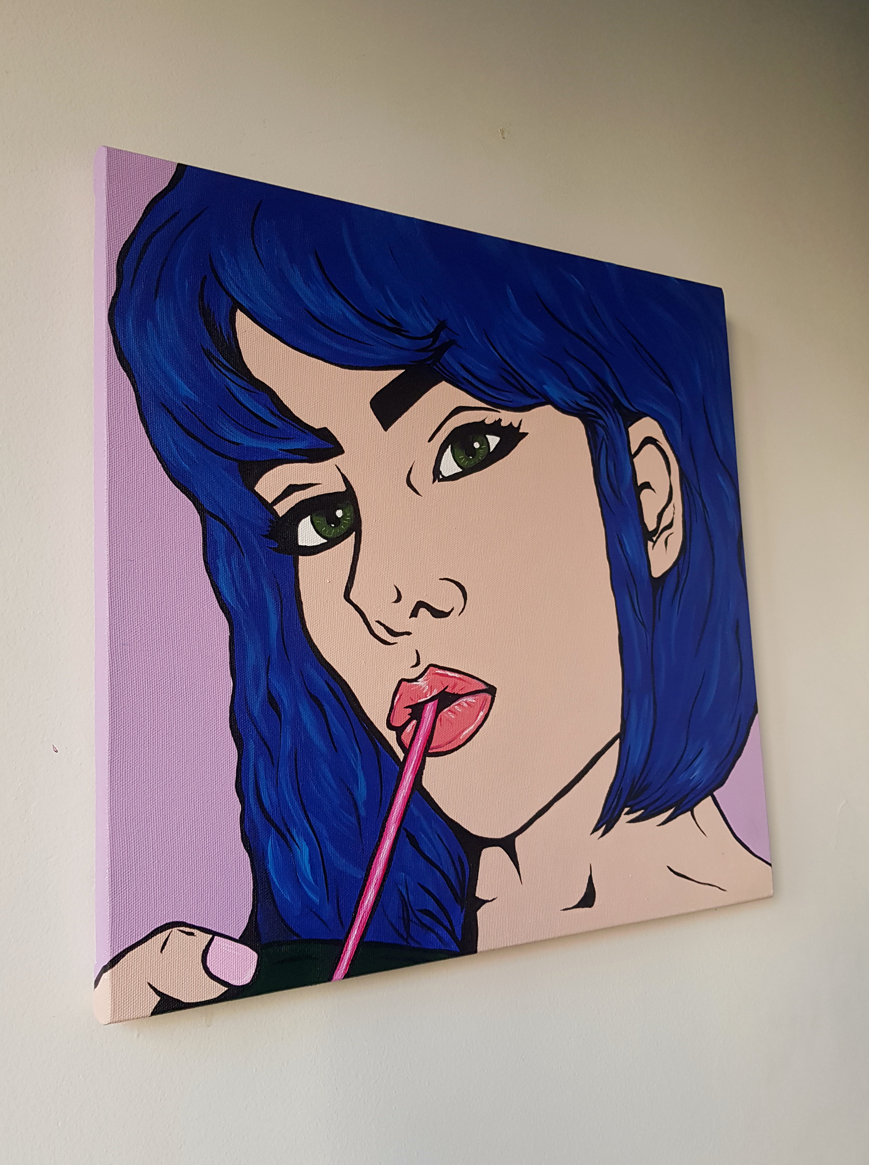 Pop art stilinde, referans görsellerden yola çıkılarak akrilik boya ile tuval üzerine hazırlanmış el yapımı bir çalışmadır.