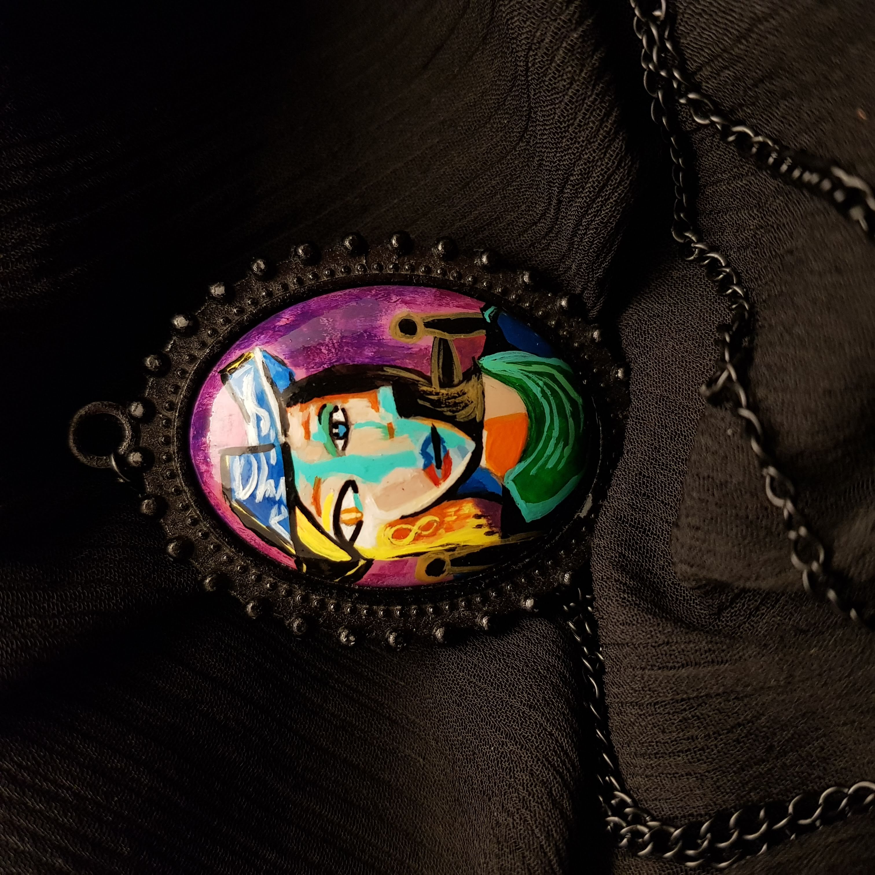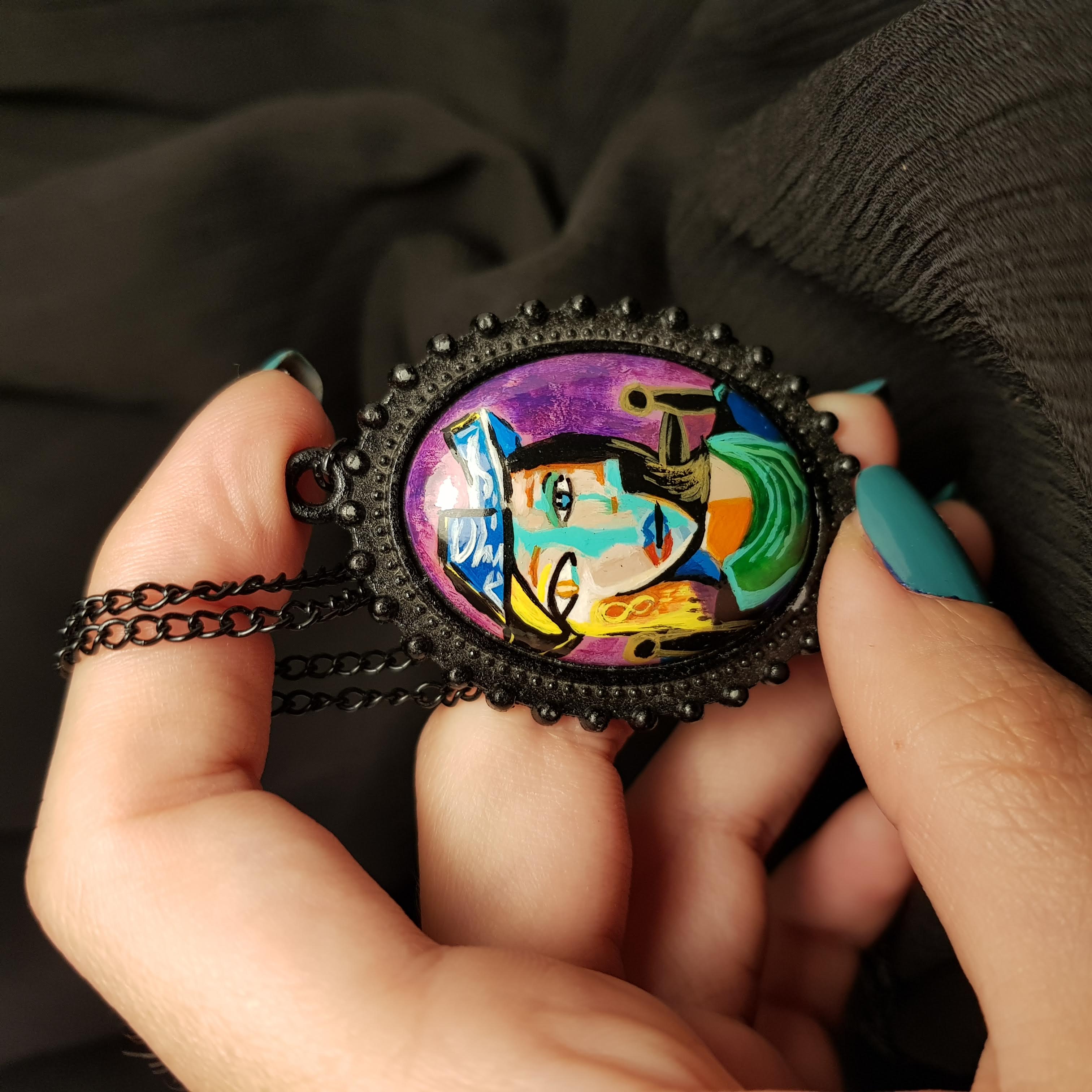 Bu koleksiyon, sanat tarihinin en dokunaklı anlarını, alışılmışın dışında bir yüzeye taşıyor. Her bir kolye, klasik sanat eserlerinden ilham alınarak özgün bir yorumla, tek tek el ile boyanıyor. Hiçbiri bir diğerine benzemez; her biri biricik, zamansız ve kişisel bir anlam taşır. Tuval yerine taş üzerine mikro boyama tekniğiyle işlenmiş bu kolyeler, taşınabilir bir sanat eseri olarak tasarlandı.