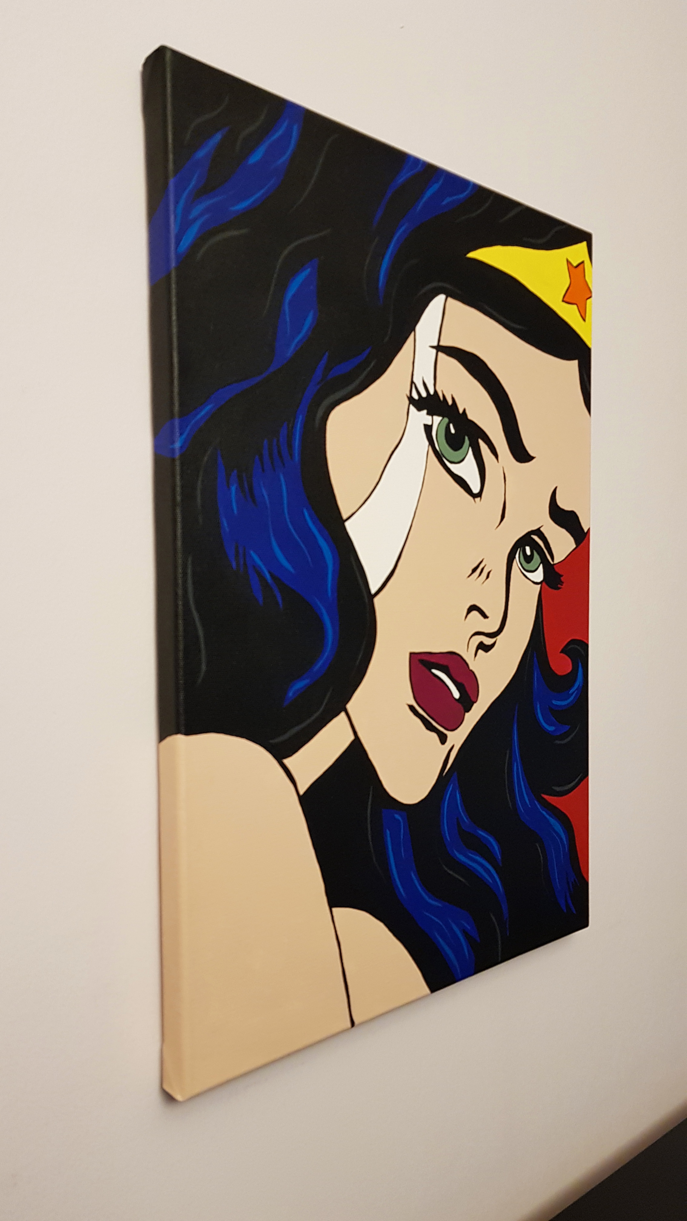 Pop art stilinde, referans görsellerden yola çıkılarak akrilik boya ile tuval üzerine hazırlanmış el yapımı bir çalışmadır.